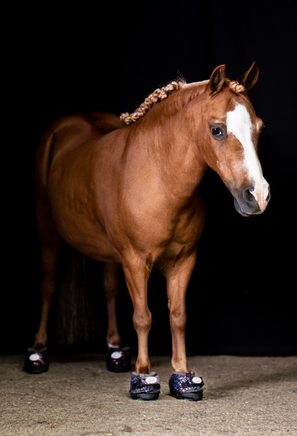 Your favorite hoof boots for your small-footed friends just got more fun! All the benefits of the original CLB with a little extra bling. The soft foam collar above the bling keeps your horse comfortable by conforming to the pastern while the rest of the boots conforms to the hoof for easy on-off and a secure fit.