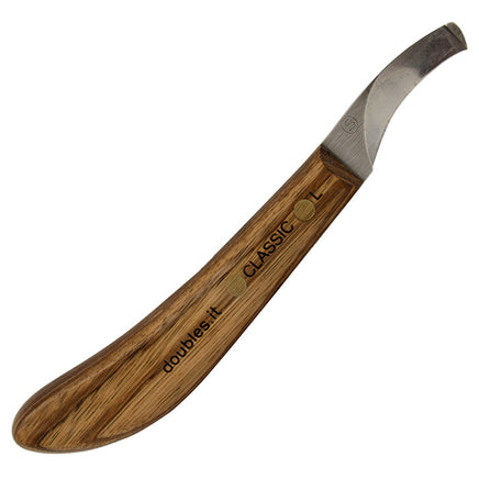 The Double S Deluxe Classic Knife has a higher tempered steel than the typical Double S Classic Knife. This knife features a slight drop blade with a small hook at the end. The handle, made of quality wood, fits comfortably in the hand and is shaped for leverage to reduce wrist strain. The handle is slightly lighter than that of the typical Double S Classic knife.