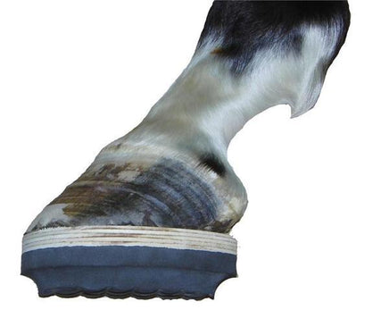 Equicast EVA Wood Therapeutic shoe provides medial and lateral stability. With this shoe the horse is only able to modify the ground surface. Typically used in resection cases, or severe medial lateral sinkers. Comes complete with .150" of sole relief cut out to accommodate for a prolapsed sole.