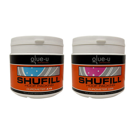 Glue-U ShuFill Impression Material is a lightweight hoof filler for shock absorption and protection. Can easily be mixed and shaped by hand as well as cut.