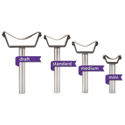 Mini Long- Farriers have requested the Mini Cradle on the Standard length post. The advantage of the mini cradle for normal hoof sizes is, when rasping or nailing, the cradle is not in the way; while still providing excellent support for the hoof.