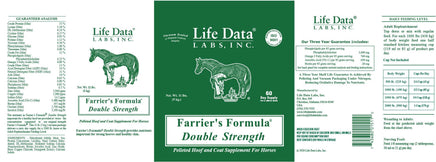 Farrier's Formula® Double Strength is a pelleted hoof supplement that can be added as a top dressing on the regular feed or given separately. It provides nutrients such as phospholipids, omega fatty acids, vitamins, minerals, and important amino acid “protein building blocks” for a healthy hoof and hair coat. These nutrients are provided at twice the concentration compared to original Farrier's Formula®. Farrier’s Formula® Double Strength supplies the nutrients required for building strong hoof capsule connective tissue in the correct balance and ratios. It promotes strong and fast growth of the hoof wall, sole, frog, and heel. Farrier’s Formula® Double Strength also promotes a glossy more deeply colored coat and strengthened connective tissues of the joints and ligaments. Over 30 years of research, clinical trials and field testing validate the effectiveness of Farrier's Formula®.
