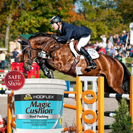 Magic Cushion® hoof packing is proven* to provide fast, soothing relief for overworked, overheated hooves. It helps supports hoof health in several ways, and starts working to reduce hoof heat within one hour. Magic Cushion is trusted by top farriers, and uses natural ingredients. It can be used as needed, or packed under a shoe and pad and left in place through the shoeing cycle.