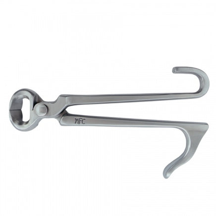 10” One Handed Foal Nipper-The MFC 10" One Handed Foal Nipper comes with a 1" wide cutting blade and H-13 head and stainless steel handle. This foal nipper has hooks that go over the top of your hand and fingers, enabling you to open the nipper with only the one hand while you hold the hoof of the fractious baby with the other hand. No more need for a nipper spring which seems to work okay in your hand but then does not go nicely into the shoeing box. Ideal for horseshoers who do a lot of breeding farm work, or who do a lot of miniature horses. The 1" wide blade edge is hardened to Rockwell 65 hardness, the base of the blade to 60, and the handles to 50 (so they will not bend).10" Miniature Hoof Nipper-The MFC 10" Mini Nipper comes with a 5/8" wide cutting blade and is made with an H-13 head for longer use of your nipper and 410 stainless steel handle so your nipper won't get rusty and ugly. Guaranteed against defects in materials and workmanship.