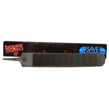 The Save Edge "beast" rasp is available in both 14" and 17" version. The extra width of these rasp provides more cutting surface, allowing you to achieve a level surface in fewer strokes.