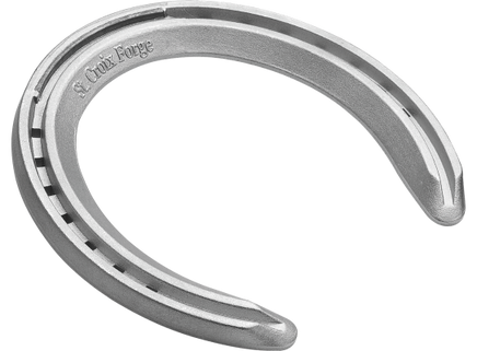 The St.Croix Turf Plate features the popular front and hind race plate patterns and has a flush wear plate in the toe to adhere to turf racing regulations where grabs are not allowed. This shoe is also popular across many performance horses including Western pleasure and training horses. The recommended nail for this shoe is an RN3.5