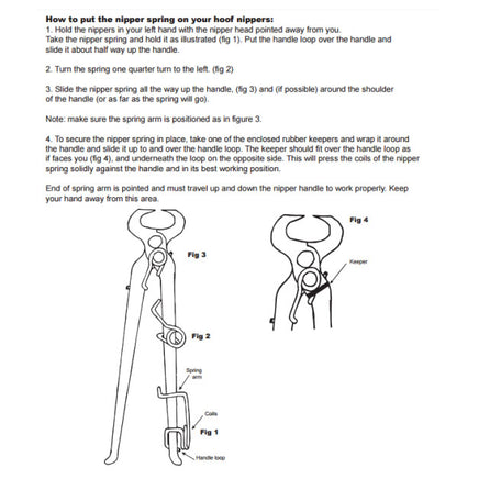 W-Brand nipper spring is designed to be easily put on and taken off a variety of hoof nippers. W-Brand nipper spring is made to help farriers trim the feet on young horses where one handed operation of the nipper is required.