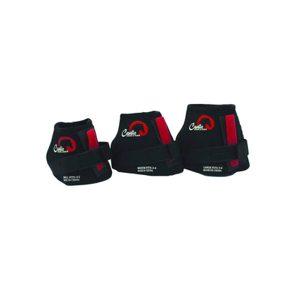 The pastern wrap offers an extra layer of protection for your horses's skin when you ride. Velcro the wrap around the hoof, keeping it low to the ground around the bottom of the bulb and drawing the elastic diagolly upward from back to front. Place boot on hoof, toe first, ensuring the wrap lies flat. Velcro red tap onto the red velcro on the tongue of the boot. Fasten boot as usual.