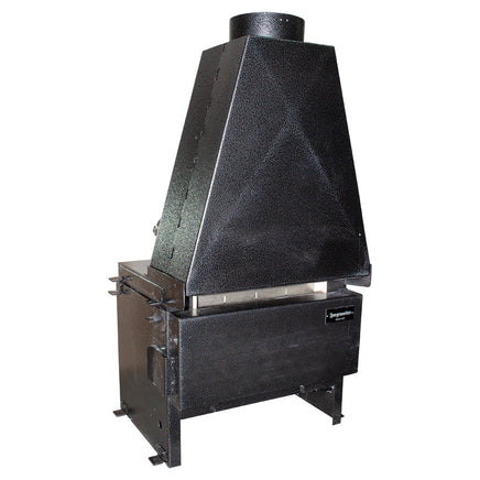 Double Burner with Dual Valve Controls. Perfect for enclosed trailer or workshop. Side Ports are optional. Heating chamber dimensions: W 13" x D 11" x H 3" Outside dimensions: W 22-1/2" x D 19" x H 34-1/2"