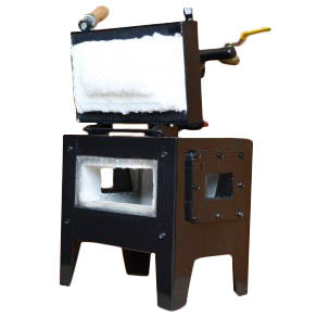 Hot fit your keg shoes red hot! Works well for smaller jobs. Open end ports allow bar stock to be run straight through the forge.