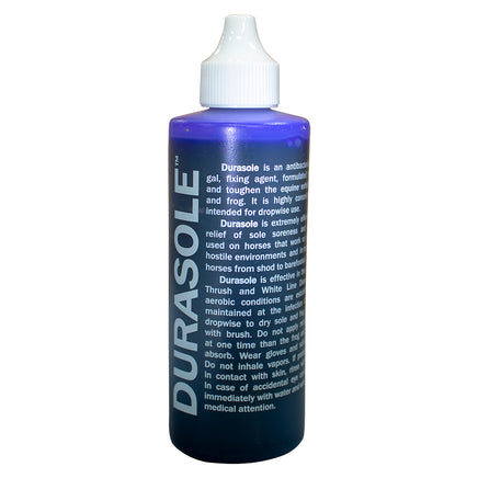 An antibacterial, antifungal, fixing agent, formulated to thicken and toughen the equine exfoliating sole and frog. It is highly concentrated and intended for drop wise use. Effective in the relief of sole soreness and horses performing in hostile environments. Effective in the control of Thrush and While Line disease when aerobic conditions are established and maintained at the infection site. Apply drop wise on the sole and frog. Disperse with a brush.