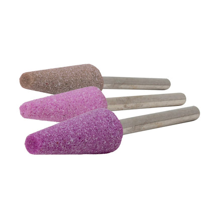 The Pink and Ruby Stone Cone Mandrills are used to sharpen loop knives and the hooks of knives.