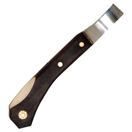 These beautiful hoof knives are hand crafted by farrier, Dan Salcito, for farriers who value quality. Salcito knives are made with high carbon steel, hand ground and finished with a high polished sharp edge. The burnt hardwood handles, polished with linseed oil, are designed to be held securely and comfortably in your hand.