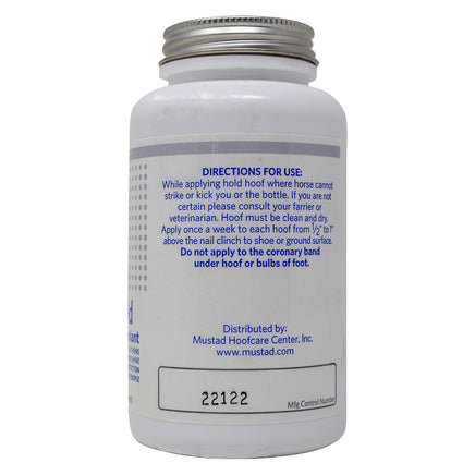 Hoof Shield is an all natural hoof sealant. Its formulated to maintain to the natural moisture level of the hoof. It also fills old nail holes which can prevent fungus, while providing a show-ring shine. It forms a barrier to prevent brittle cracking in hot, dry conditions and soft mushy hooves in wet conditions.