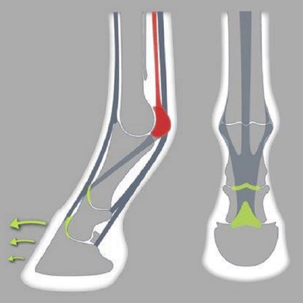 The ACR Rolling Sport Shoe is designed for sport horses that work on firm ground. Its shape increases adherence while its rolling toe facilitates breakover. This shoe also reduces anterior lever arm, relieving the deep digital flexor tendon and protects against fetlock suspensory apparatus and superficial digital flexor tendon problems.