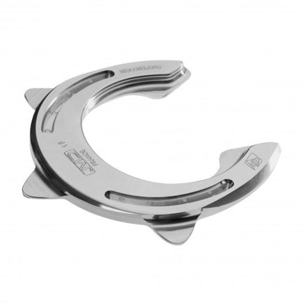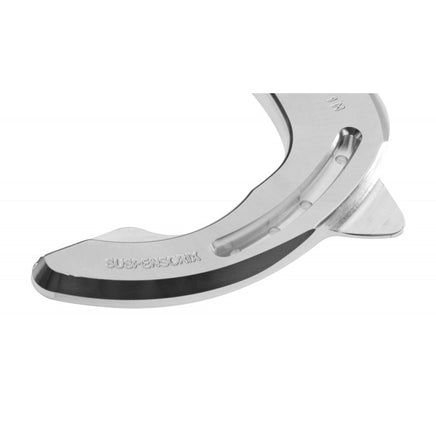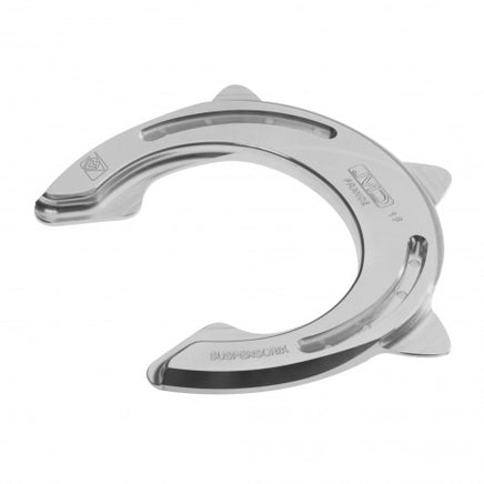 Model designed by Professor Jean-Marie Denoix. Shoe with wide toe and narrow beveled branches. Designed using hi-tech aluminum alloy. Non-tempered alloy: can be used for risk-free hot shoeing up to 450°C (842°F). 3 clips to allow use with option of 1 or 2 clips. (Hinds only have 2 clips)
