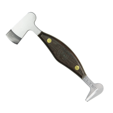 Made from high quality tool steel paired with a high quality wooden handle, cutter used for cutting clinches and gouge used for removing hoof material under the nail when clinching nails. Available in right and left hand versions.